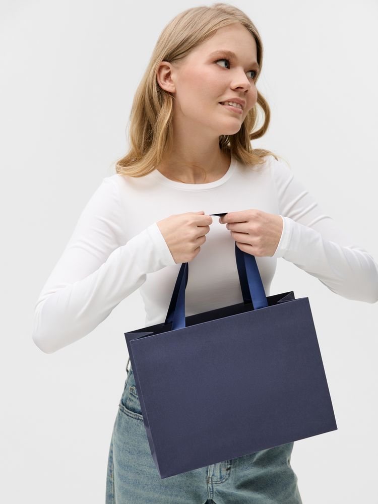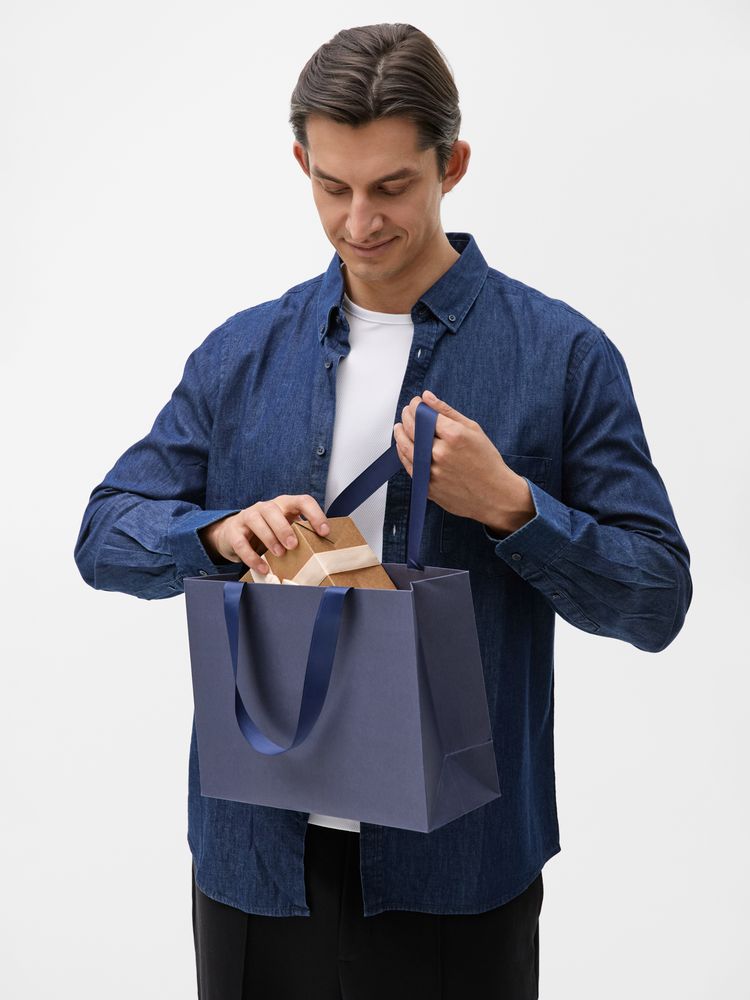 Пакет бумажный Manilla M, синий можно заказать в нашей компании по самой доступной цене от 280 рублей.
