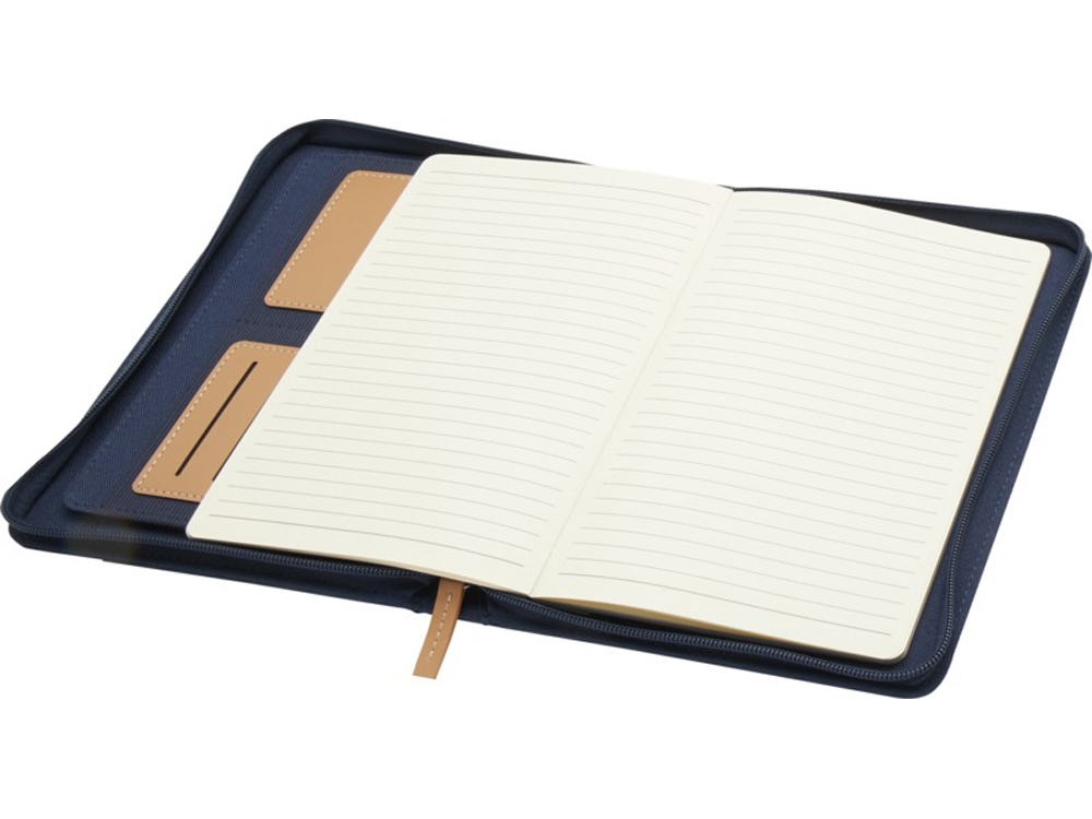 Папка Nomumi формата А5 с закругленными углами — удобный и необходимый предмет в офисе, изготовленный из переработанного пластика. Содержит 64 листа кремового цвета плотностью 80 г/м2, застежку-молнию, петлю для ручки и карман-гармошку. Переработанный PET пластик, бумага.