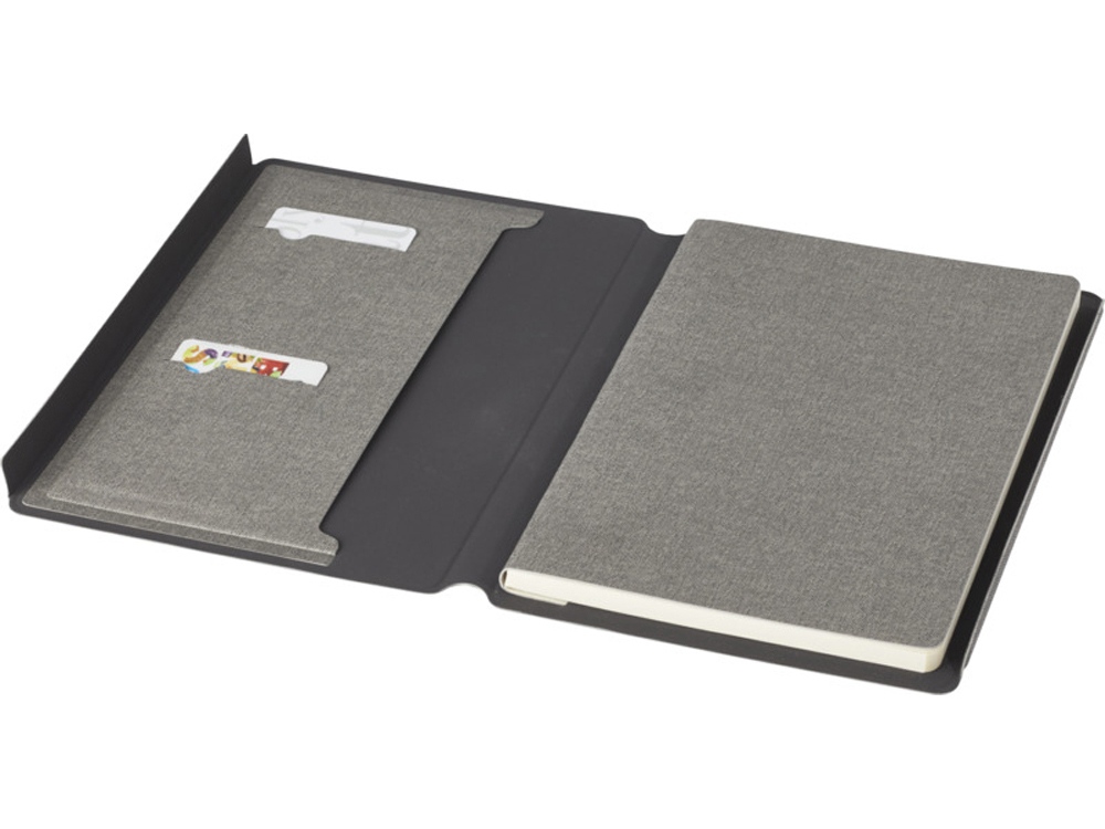 Папка-органайзер Notu, сертифицированная RCS, частично изготовлена из переработанного полиэстера, бывшего в употреблении, что делает данную папку-органайзер более экологичным выбором, поскольку помогает сократить использование первичного сырья. Имеет магнитную застежку, карман-гармошку и 64 листа в линейку кремового цвета из переработанной бумаги плотностью 80 г/м² из экологически чистых источников. FSC certified paper. FSC Mix Credit P7 CU-COC-877277.