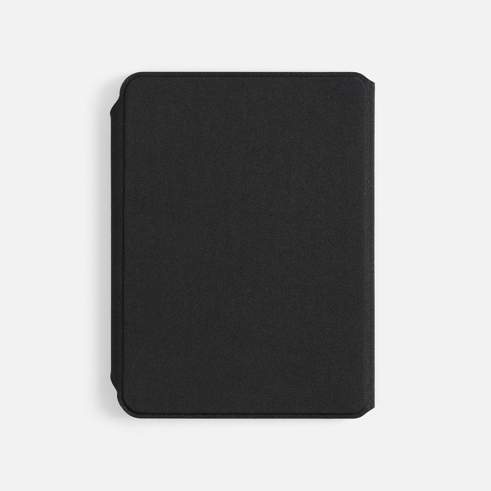 Обложка из ткани, на магнитной застежке с деревянной шильдой: