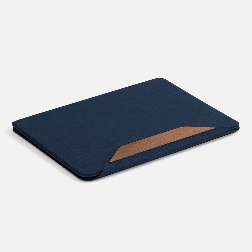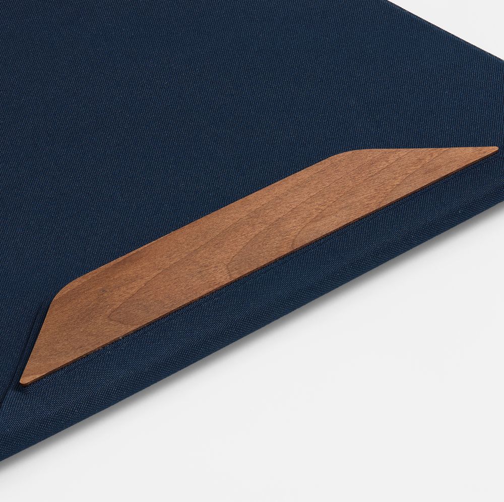 Обложка из ткани на магнитной застежке c деревянной шильдой: