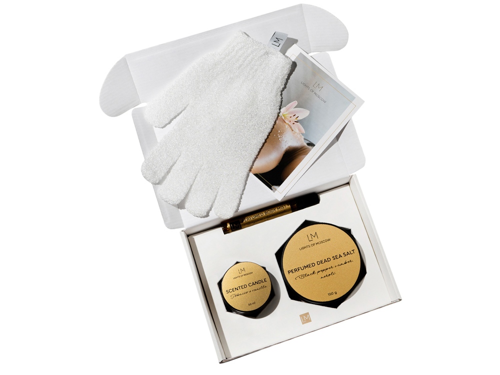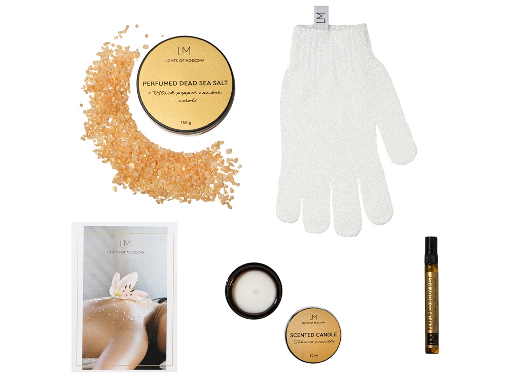 Парфюмированный спа-набор с лого Lights of Moscow можно заказать в нашей компании по самой доступной цене от 2 100 рублей.