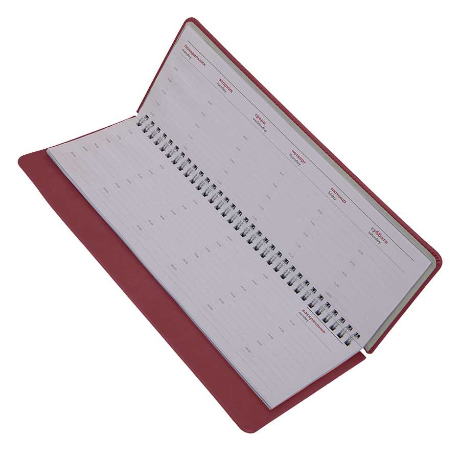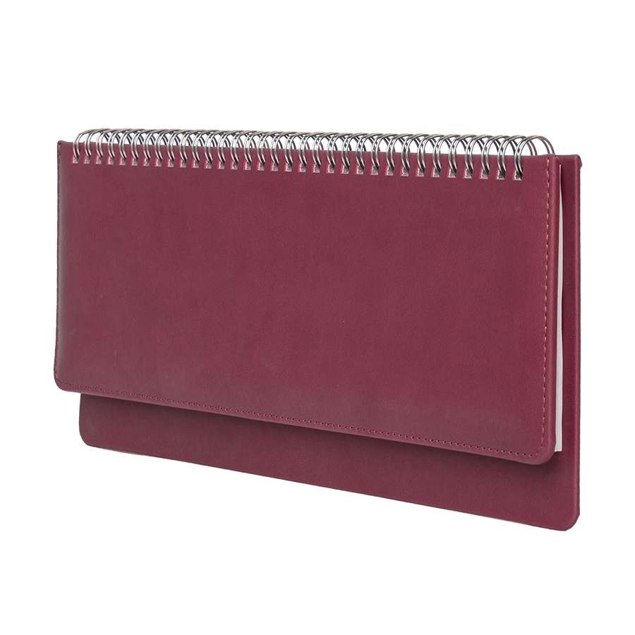 Цвет обложки, близкий к пантону 491C Размер 140*300 мм Переплет твердый, на металлической спирали, прошивка по периметру верхней обложки Обложка PU Velvet Блок недатированный, в линейку, прямые углы Бумага белая, плотность 70 г м2 Форзац нахзац серые 128 страниц Упаковка крафтовый сливбоксВ данный момент происходит смена справочной части блока. Внешний вид изделия остается без изменений.