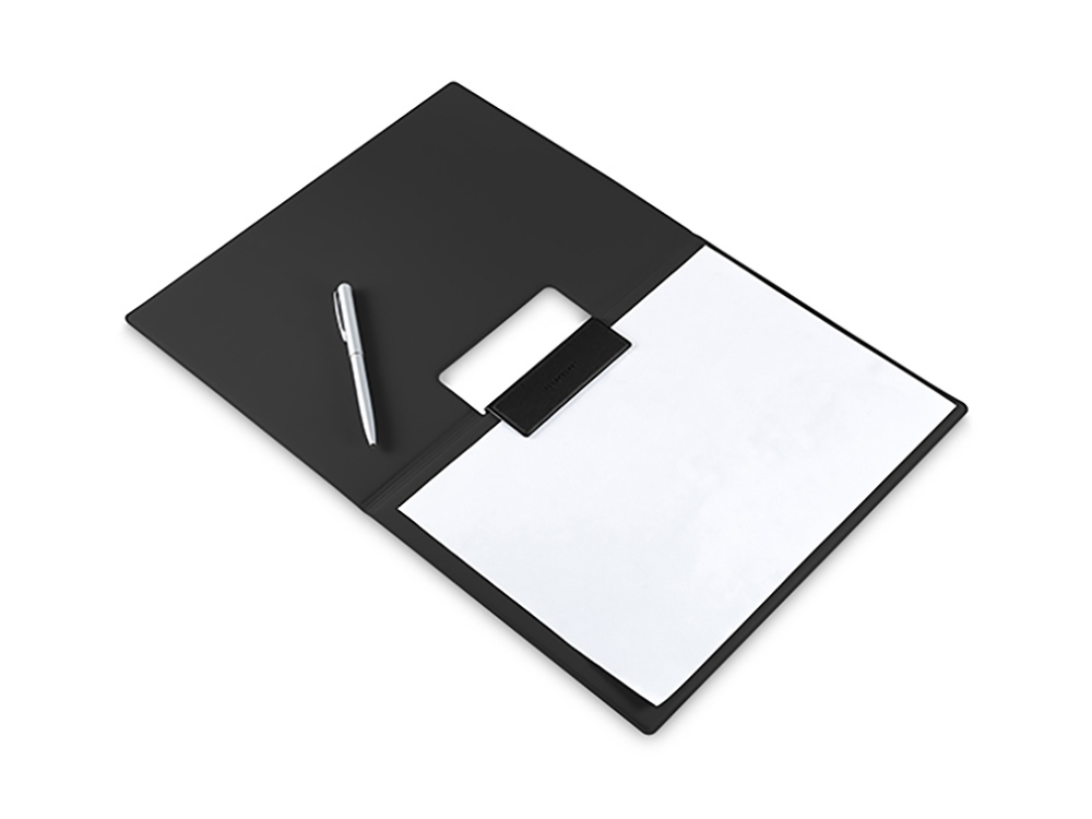 Внешняя часть выполнена из текстурной экокожи, благодаря чему планшет смотрится строго и по-деловому и прекрасно подходит для брендирования методом тиснения.