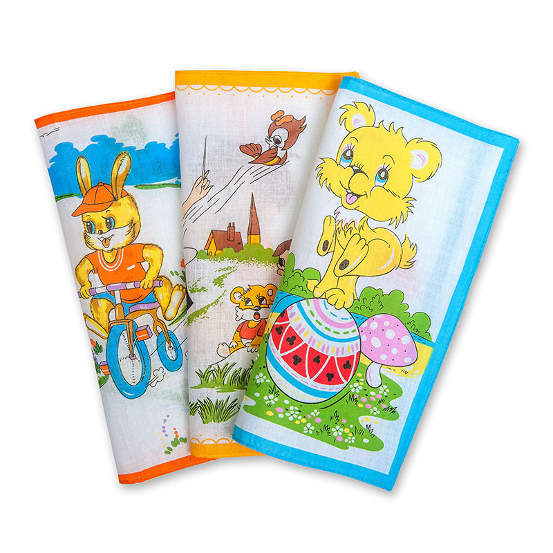 Натуральные мягкие платочки для самых маленьких из экологически чистого 100% хлопка, с изображениями весёлых персонажей. Платочки остаются неизменными после стирки - яркими и красочными. Упакованы в удобный еврослот с отверстием для подвешивания на крючок, в упаковке 3 платочка.