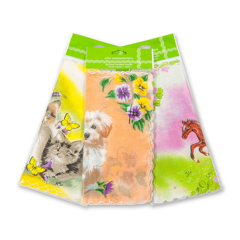 Платочки для самых маленьких — из самой мягкой ткани, с изображениями весёлых персонажей.