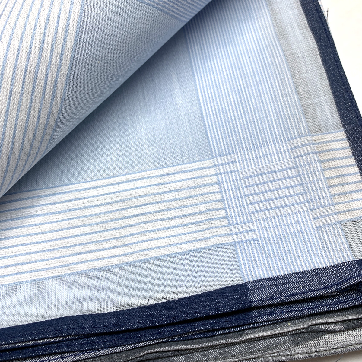 Большие светлые мужские носовые платки с жаккардовой полоской торговой марки "G" из натурального хлопка. Батистовое плотное и мягкое полотно. Платки упакованы в БОПП пакеты по 12 шт. В пакете 3 расцветки. Отгрузка платков в ассортименте.