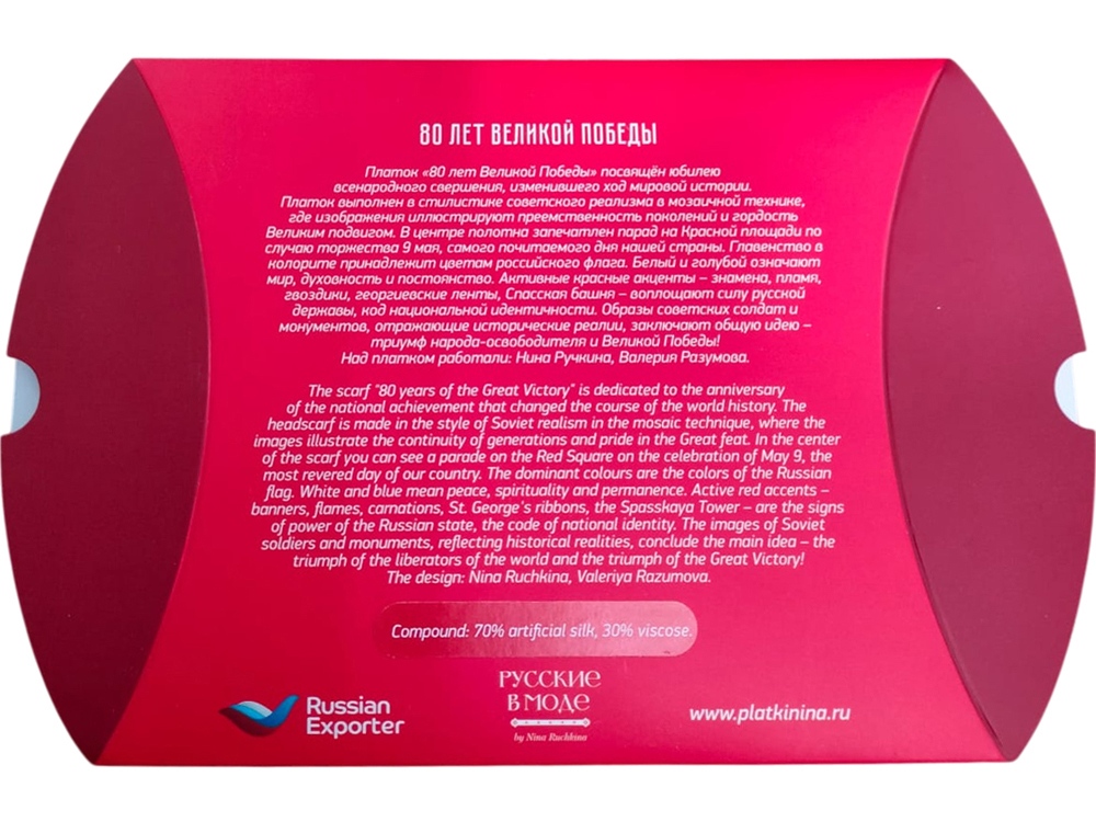 Платок 80 лет Великой Победы можно заказать в нашей компании по самой доступной цене от 3 000 рублей.