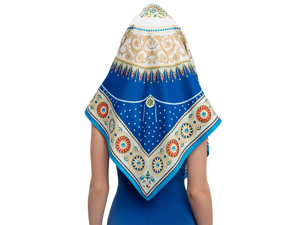 Платок Севрский фарфор создан брендом Русские в моде совместно с Музеем-заповедником Павловск и вдохновлен бесценным шедевром из исторической коллекции Павловского дворца – Севрским фарфоровым сервизом.