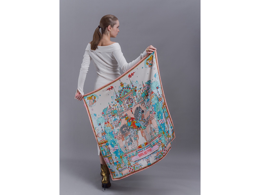 Платок Царьград создан в партнерстве с одноименным загородным курортом, где чтут лучшие обычаи русского гостеприимства. Дизайн платка обращен к воплощению народной традиции чародейства и сказки. Сюжет иллюстрирует фольклорную сцену из произведения Сивка-Бурка о победе истинного чувства и исполнении желаний.