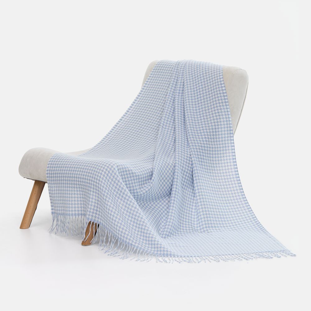 Графичный узор «гусиная лапка» (или «pied-de-poule») превращает изделие в изысканный интерьерный акцент, а бахрома добавляет ему элегантности и завершенности. Это воплощение безупречного вкуса и дань вневременной классике.