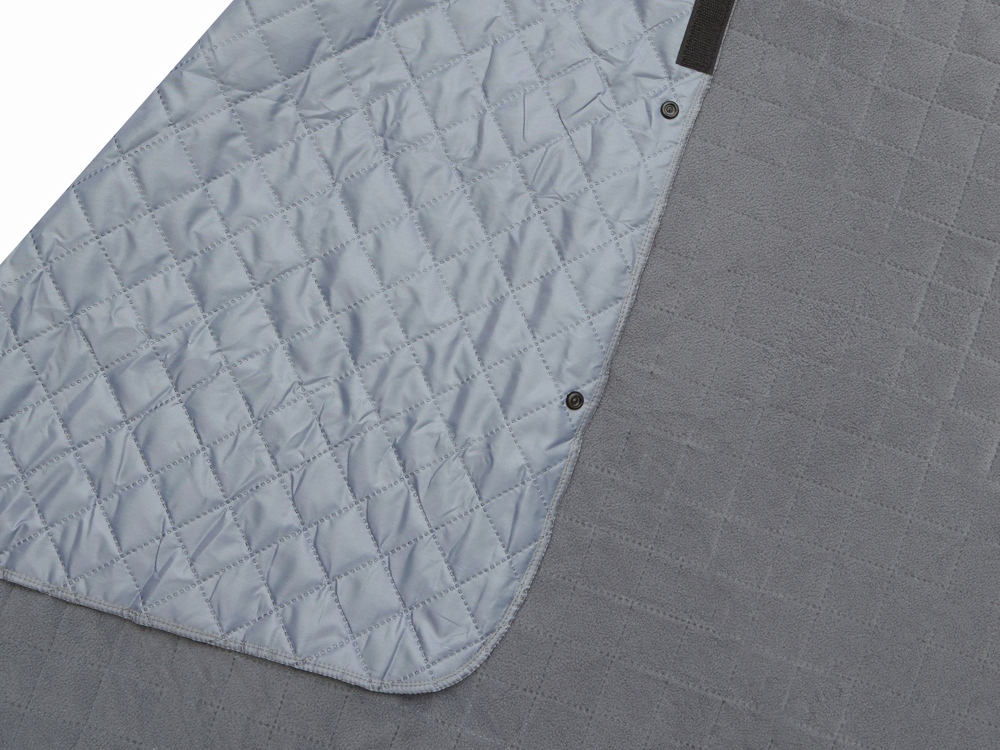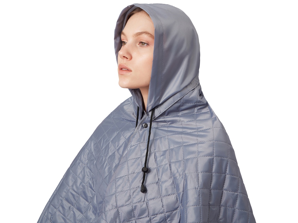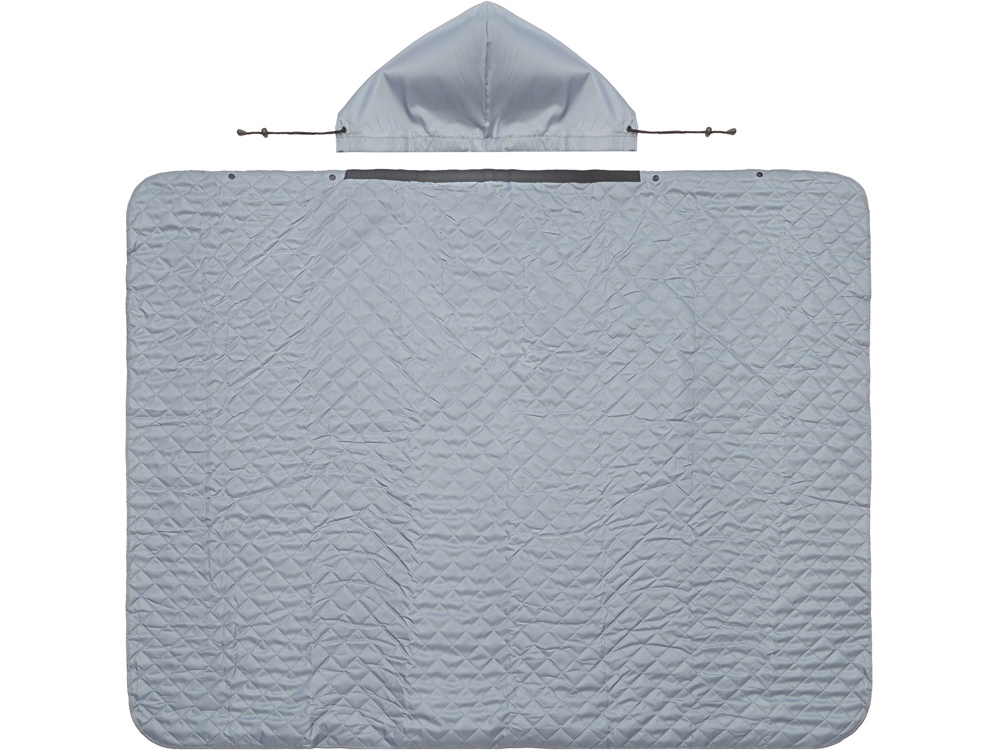 На внутренней стороне из флиса приятно и тепло сидеть, а наружная сторона из полиэстера с водоотталкивающим покрытием не позволяет пледу намокнуть или сильно испачкаться. Для больше удобства использования пледа во время дождя в комплекте идет капюшон, который фиксируется с помощью липучки. Накинув плед на плечи, застегните его на кнопки вверху и наденьте капюшон. Вы не промокните во время неожиданного дождя!