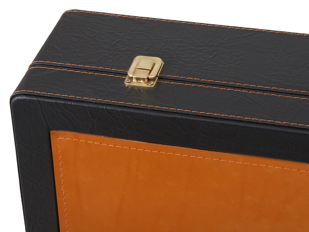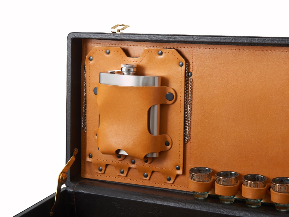 Все аксессуары надежно крепятся к кейсу кожаными ремешками на кнопке, обеспечивая удобство транспортировки и сохранность содержимого.