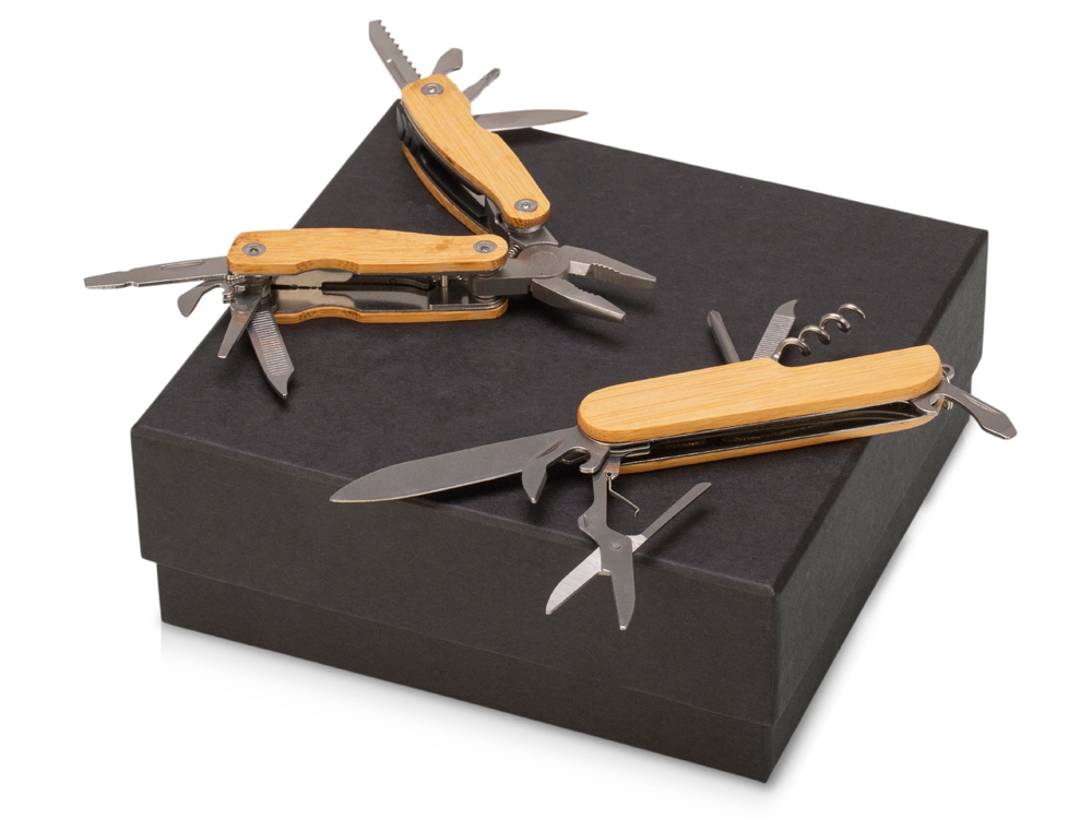 Комплектность: мультитул-нож, мультитул-пассатижи, коробка