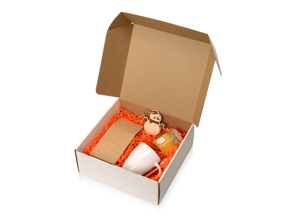 Комплектность: кружка с ложкой 320 мл, крем-мёд с облепихой 250 г, чай фруктовый 100 г, новгодняя подвеска