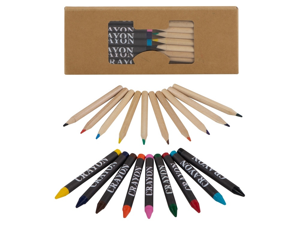 Набор из блокнота и цветных карандашей отлично подойдёт для детского промо-сувенира.