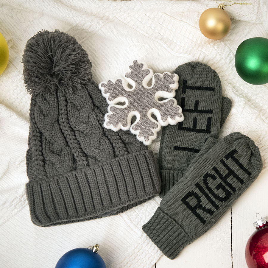 Подарочный набор HUG представлен в сером цвете, включает в себя:Варежки LEFT RIGHT с теплой подкладкойарт. 20603 30 Цвет серыйРазмер LМатериал акрил, флис внутри