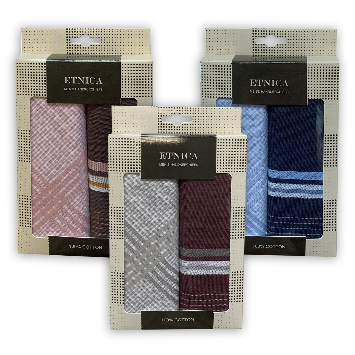 Подарочный набор мужских платков ETNICA с 2 -ми пестроткаными платками.