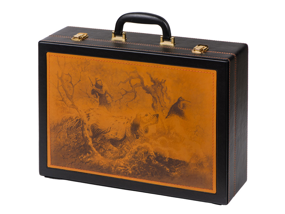 Набор Охотничий азарт. Каждый кейс изготовлен из натуральной кожи. На наружных сторонах имеется свой уникальный авторский рисунок, выполненный в технике художественного выжигания. Внутренние элементы также отделаны натуральной кожей, которая различается по цветовым решениям. Остальные предметы подарочного набора изготовлены из высококачественной нержавеющей стали. Этот подарок идеально подойдет для настоящих мужчин с характером!