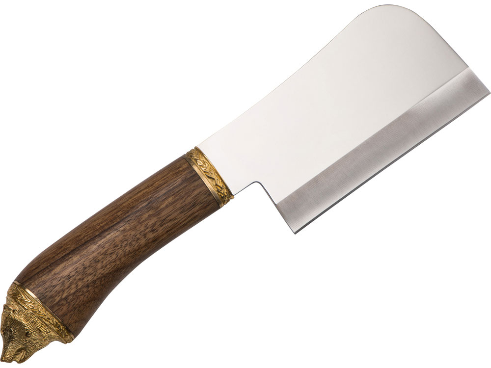Нож Тяпка с головой нерж. сталь 45х13, рукоять орех, бронзовое литье, в чехле с художественным выжиганием– 1 шт.