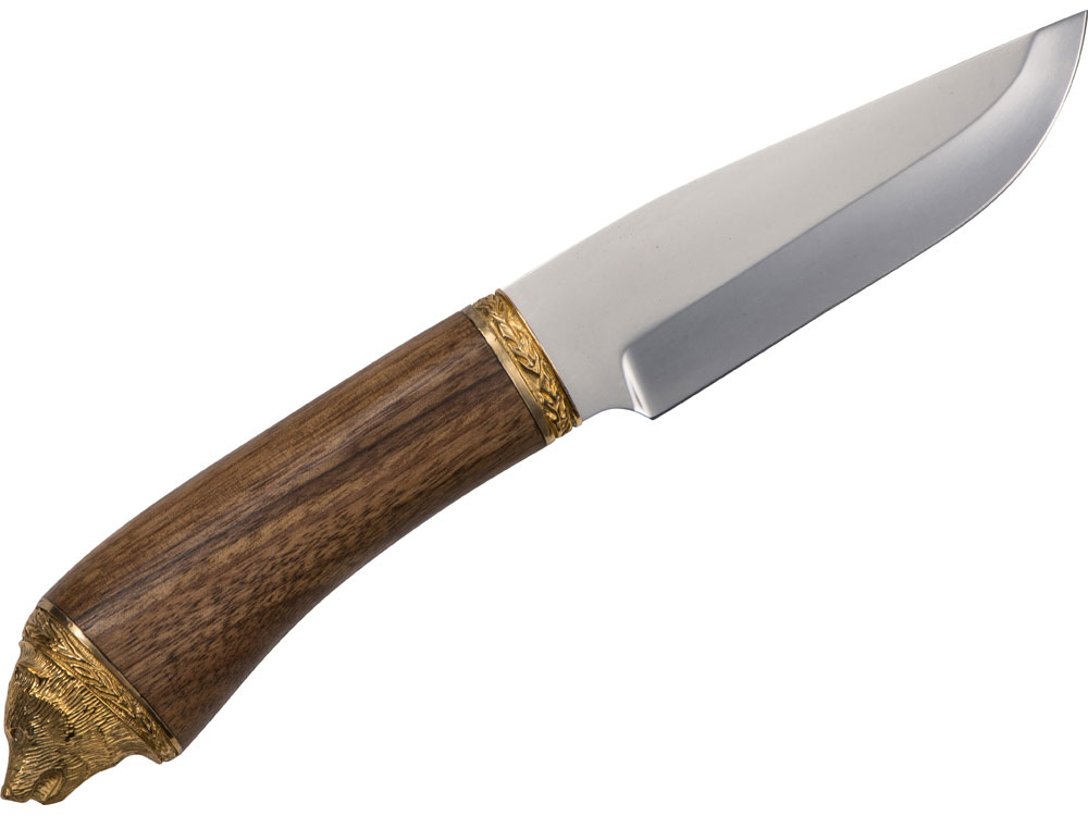 Нож разделочный (нерж. сталь) 45х13 в чехле с художественным выжиганием, рукоять орех, бронзовое литье– 1 шт.