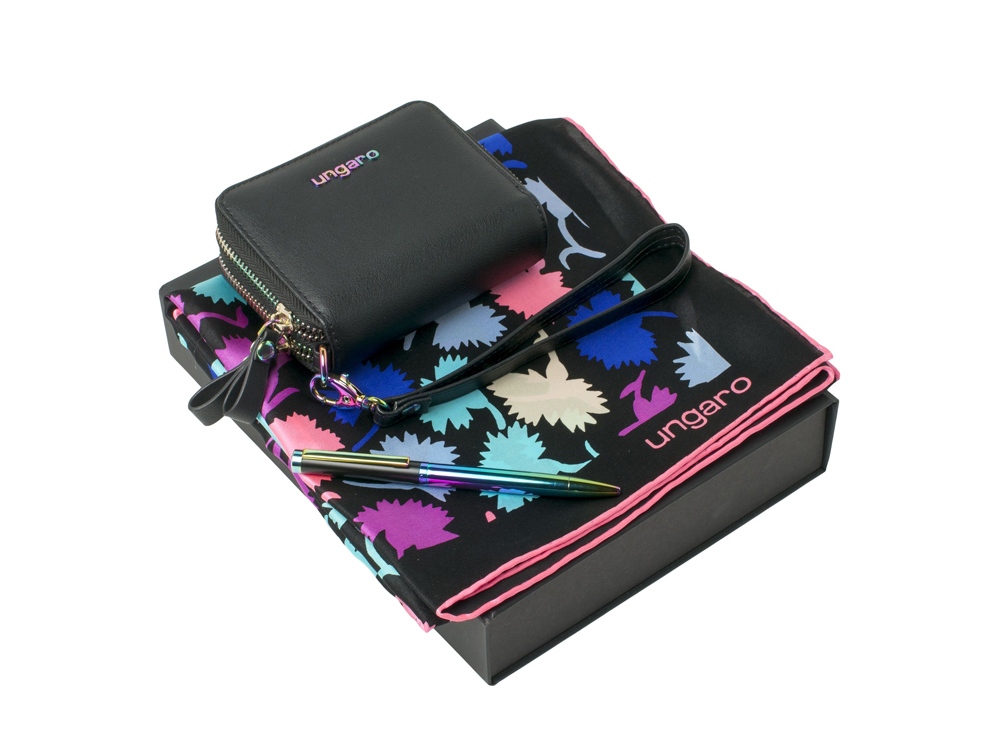 Комплектность: платок шелковый 65 х 65 см, кошелек 12 х 4 х 9 см, ручка шариковая d1 х 13,6 см