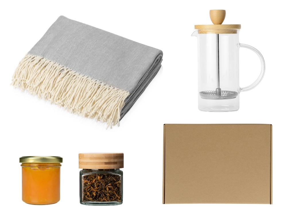 Подарочный набор с пледом, френчпрессом, чаем и вареньем можно заказать в нашей компании по самой доступной цене от 4 070.39 рублей.