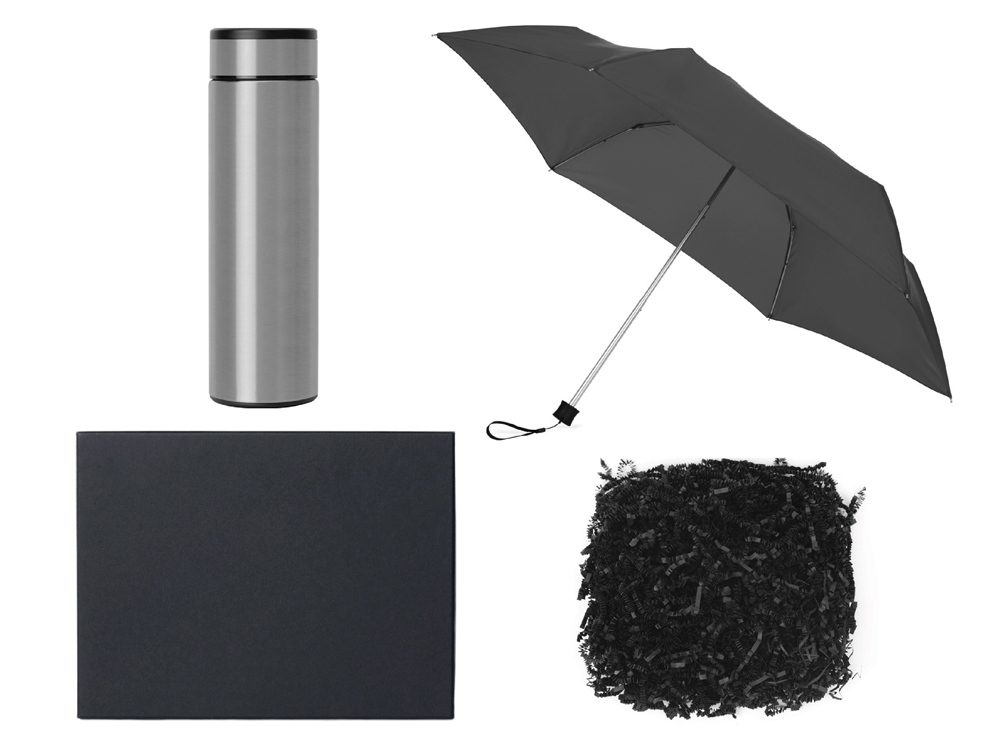 Такой набор подойдет как для городских прогулок, так и для выездов на природу. Термос сохранит ваш напиток горячим, а зонт защитит от дождя.
