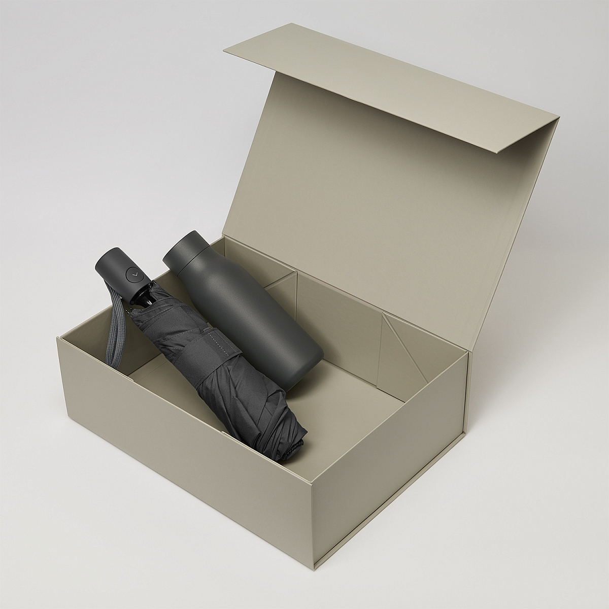 Набор с зонтом — практичное и продуманное решение для подарка тем, кто ценит функциональность и стиль в повседневных аксессуарах. Набор подойдёт как для ежедневного использования в городских условиях, так и для путешествий — он сочетает в себе надёжность, удобство и современный дизайн.