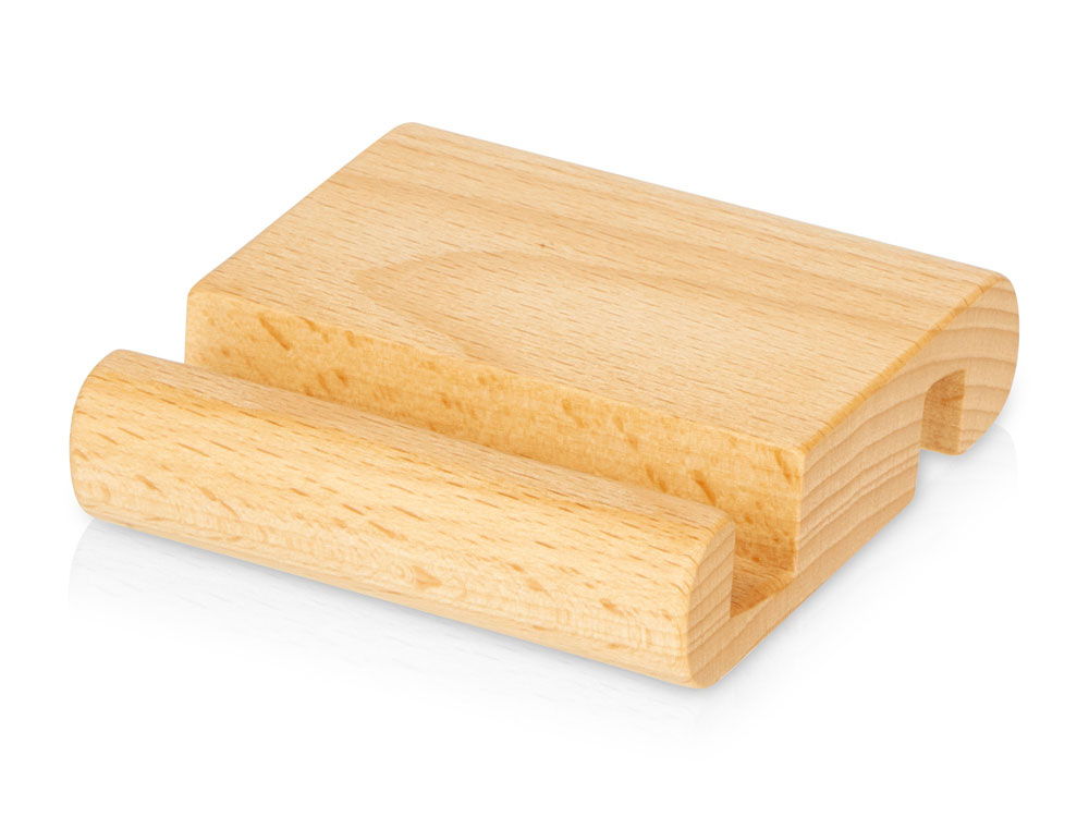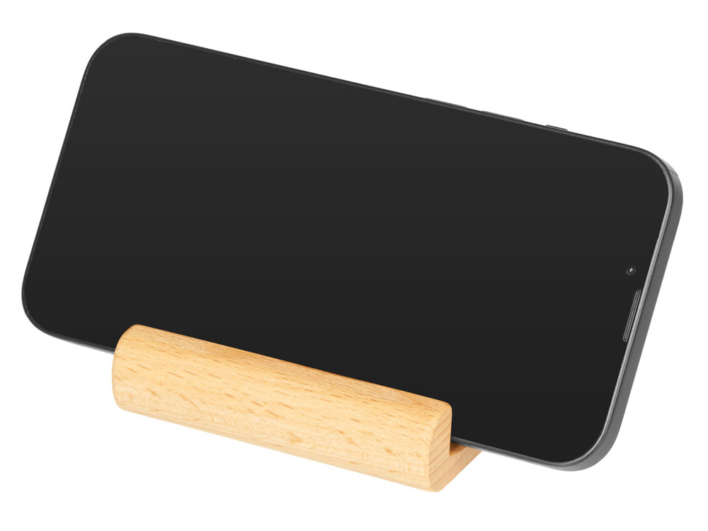Подставка для смартфона изготовлена из дерева бука, что обеспечивает прочность и экологичность изделия. Она имеет две разные выемки, которые позволяют установить смартфон различных размеров как с чехлом, так и без него. Материал безопасен и подходит для любых поверхностей. Легкий уход за подставкой также делает ее практичной и удобной в использовании.