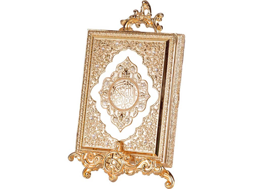 Отличный подарок для любителей роскошных вещей. Изумительная подставка под Коран позволит аккуратно хранить главную книгу всех мусульман. Подставка обладает изысканным, богатым внешним видом.