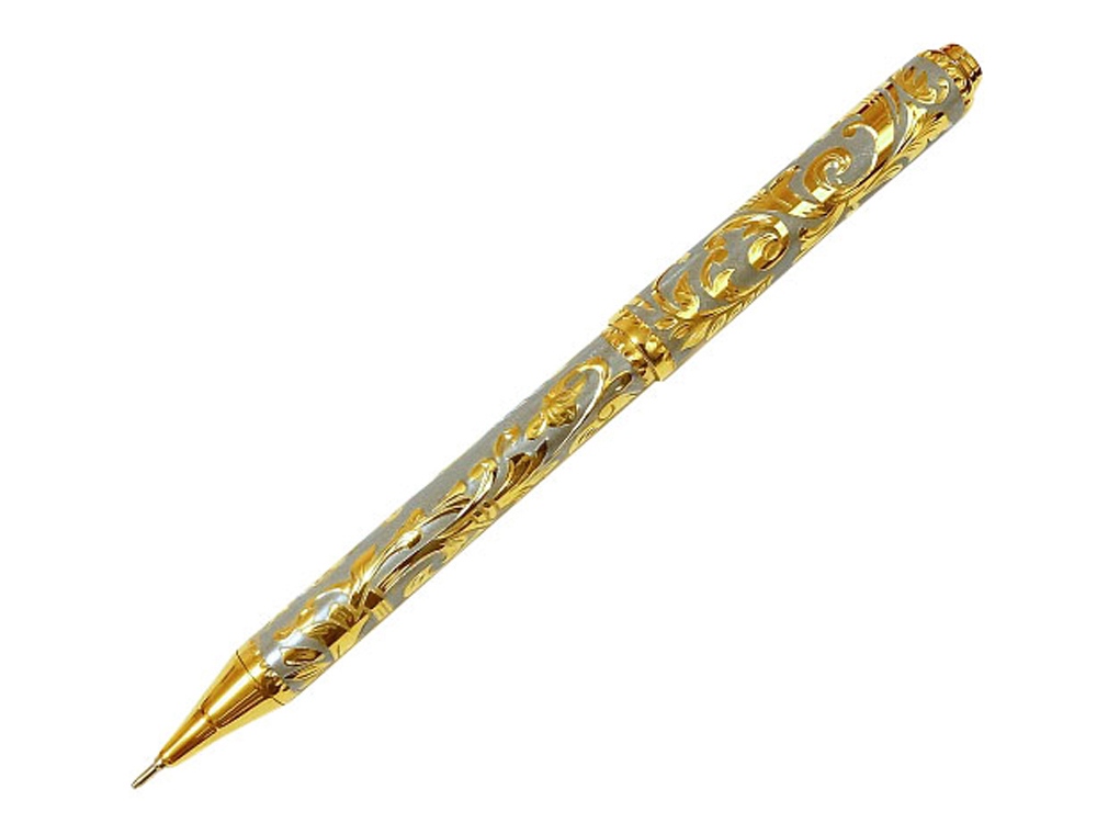 Оригинальная подставка под визитки с латунной ручкой покрытой золотом и никелем - это статусный подарок, который станет приятным сюрпризом как для рядового сотрудника, так и для руководителя. Стильный бизнес аксессуар подчеркнет внимание к деталям и поможет в формировании положительного впечатления о стабильности компании. Не будем скрывать, на любом рабочем столе такой прибор для письма с визитницей смотрится просто изумительно. Затейливые узоры на ручке привлекают внимание, а надежная подставка на небольших ножках уверенно держится на любом покрытии.