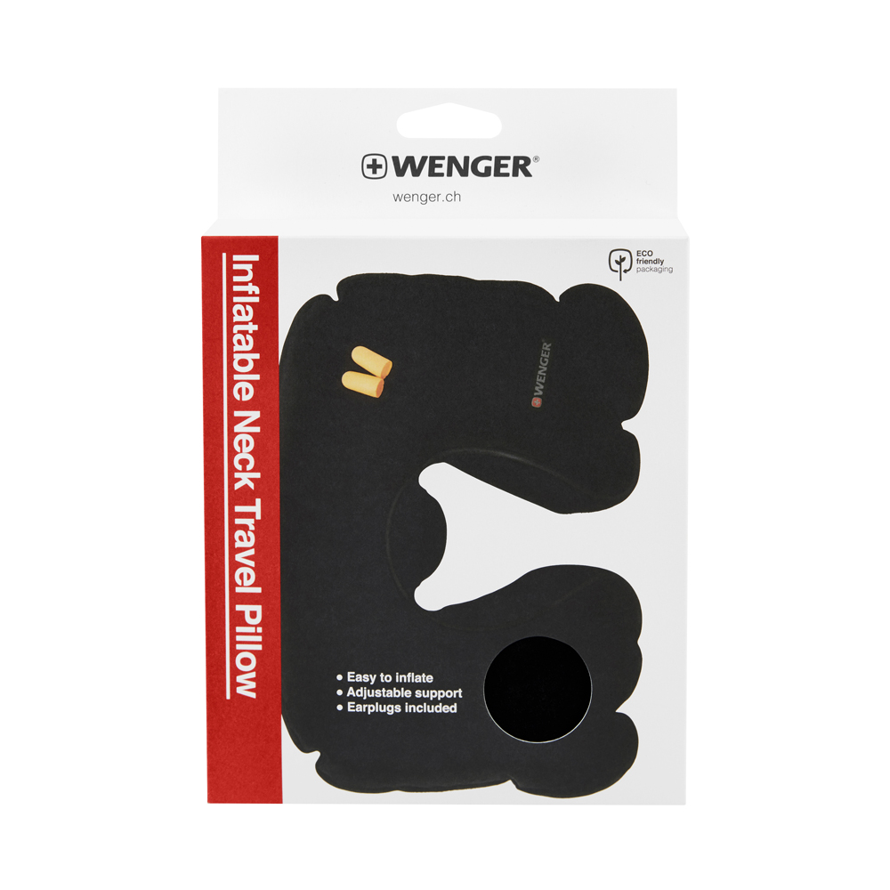 Подушка для самолёта WENGER, надувная, чёрная, флис, беруши в комплекте можно заказать в нашей компании по самой доступной цене от 1 360 рублей.
