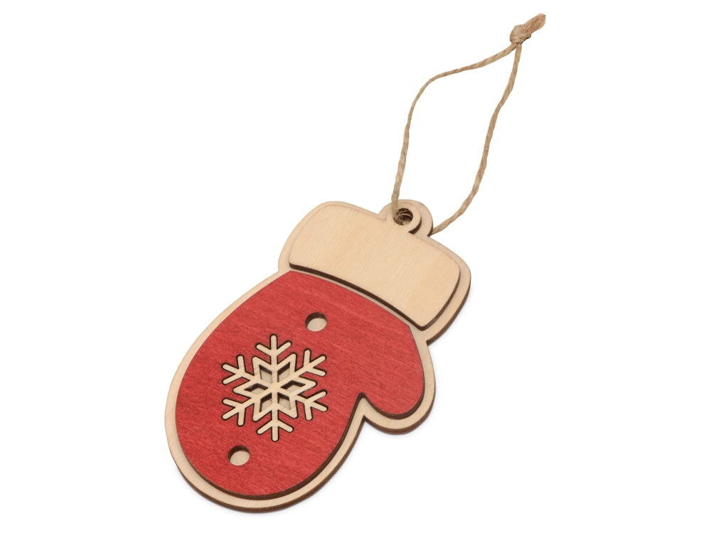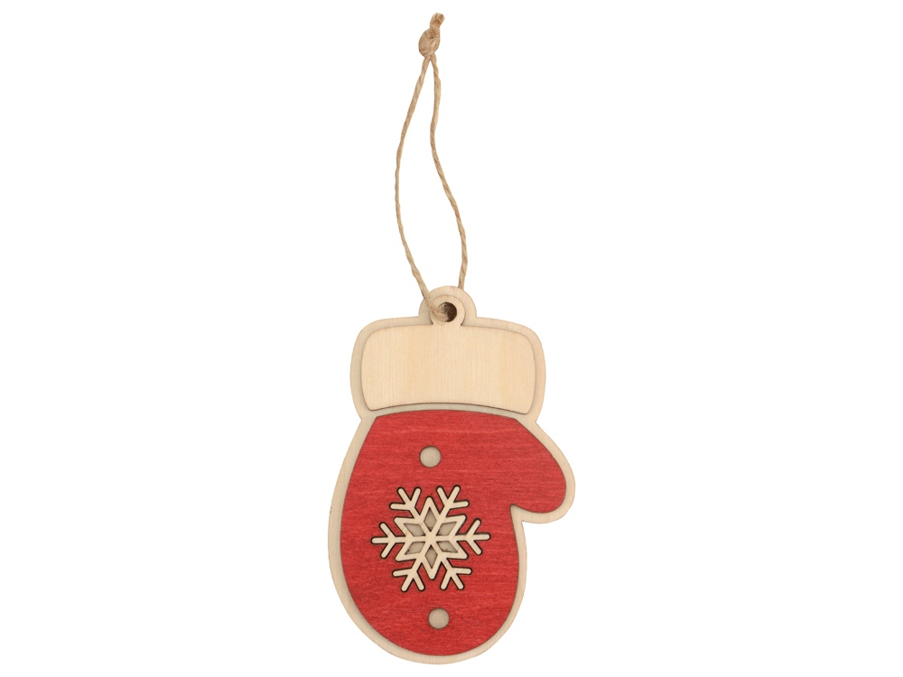 Трогательная елочная игрушка в виде новогодней варежки – атмосферный и праздничный сувенир. Подвеска изготовлена из березовой фанеры и украшена тонировкой красного цвета. Текстура натурального материала и объем игрушки, выполненной в два слоя, делают ее приятной не только внешне, но и тактильно.