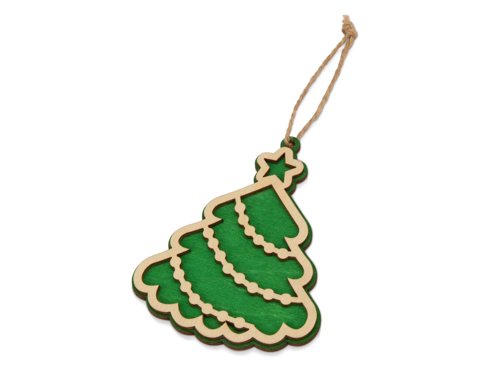 Елочная игрушка в виде главного новогоднего дерева – атмосферный и праздничный сувенир. Елочка изготовлена из березовой фанеры и украшена тонировкой зеленого цвета.