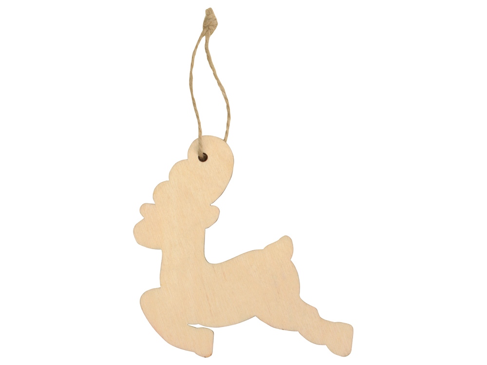 Елочная игрушка в виде оленя изготовлена из нескольких слоев березовой фанеры и тонирована в красный цвет. Игрушка прекрасно подходит на роль рекламного носителя, может стать приятным дополнением к основному подарку или отдельным небольшим сувениром, а также частью новогоднего составного набора. Поле для нанесения достаточно большое и заметное, чтобы разместить свое лого или новогодние пожелания, а сделать изображение выделяющимся можно при помощи заливки полимерной смолой.