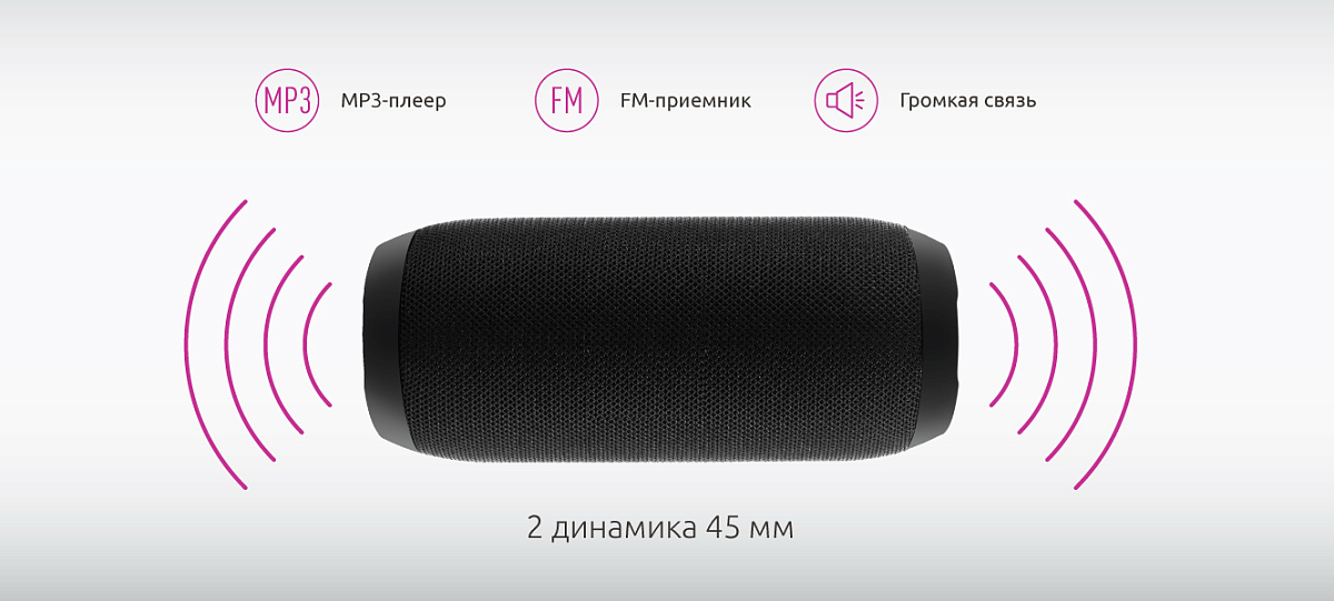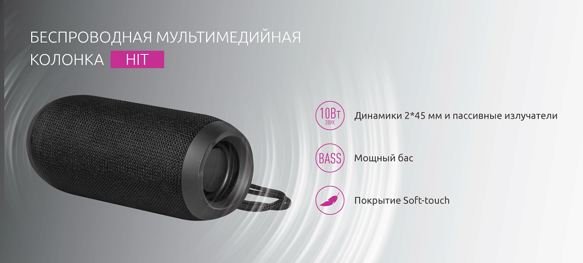 Особенности: FM приемник; степень защиты IPX4; 2х45 мм, 2 пассивных излучателя; режим True Wireless Stereo; беспроводную колонку HIT очень удобно брать с собой на небольшие мероприятия, тренировки на открытом воздухе, на отдых на природе; колонка подключается к ноутбуку или смартфону через Bluetooth; работает в активном режиме до 10 часов