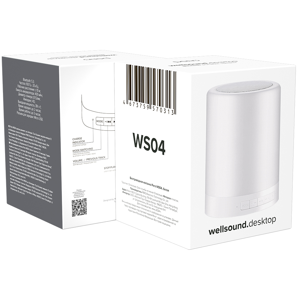 Портативная колонка PERO WS04 wellsound.desktop можно заказать в нашей компании по самой доступной цене от 1 291 рублей.