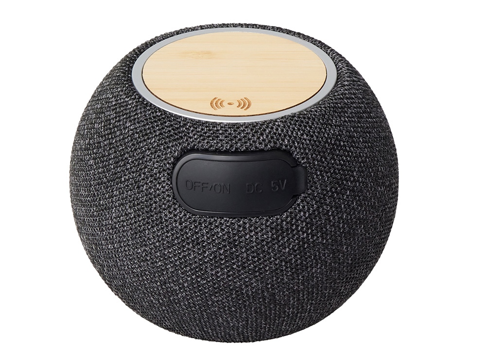 Bluetooth-колонка мощностью 5 Вт обеспечивает качественное звучание для средней комнаты или офиса. А верхняя панель из бамбука с беспроводной зарядкой позволяет подзаряжать смартфон, просто положив его на колонку. Зарядка работает при подключении кабеля — удобно и практично!