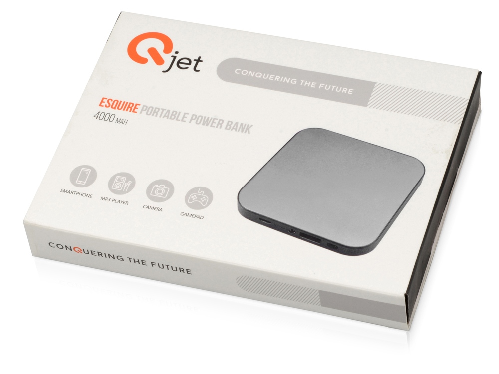 Внешний аккумулятор Esquire (4000 mAh) от бренда Qjet - идеальный подарок для сотрудников и партнеров. Корпус зарядного устройства изготовлен из алюминия. На него можно нанести гравировку. Большая площадь поверхности аккумулятора представляет широкие возможности для персонализации. На нее можно нанести логотип компании, любимую цитату или оригинальный рисунок. В Esquire встроен яркий светодиодный фонарик, который всегда поможет сориентироваться в темноте.