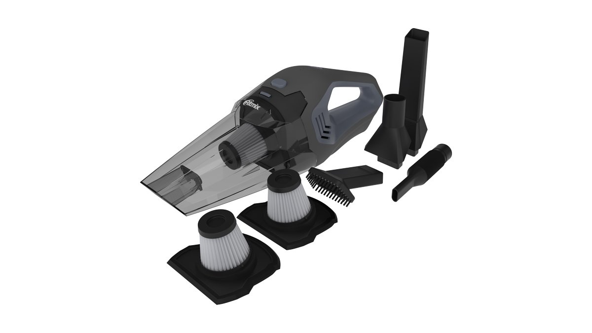 Комплектация: пылесос, 3 многоразовых моющихся фильтра HEPA (1 предустановлен), щетка для очистки фильтров, 4 насадки, кабель USB для зарядки, сумка для хранения, кабель питания от прикуривателя