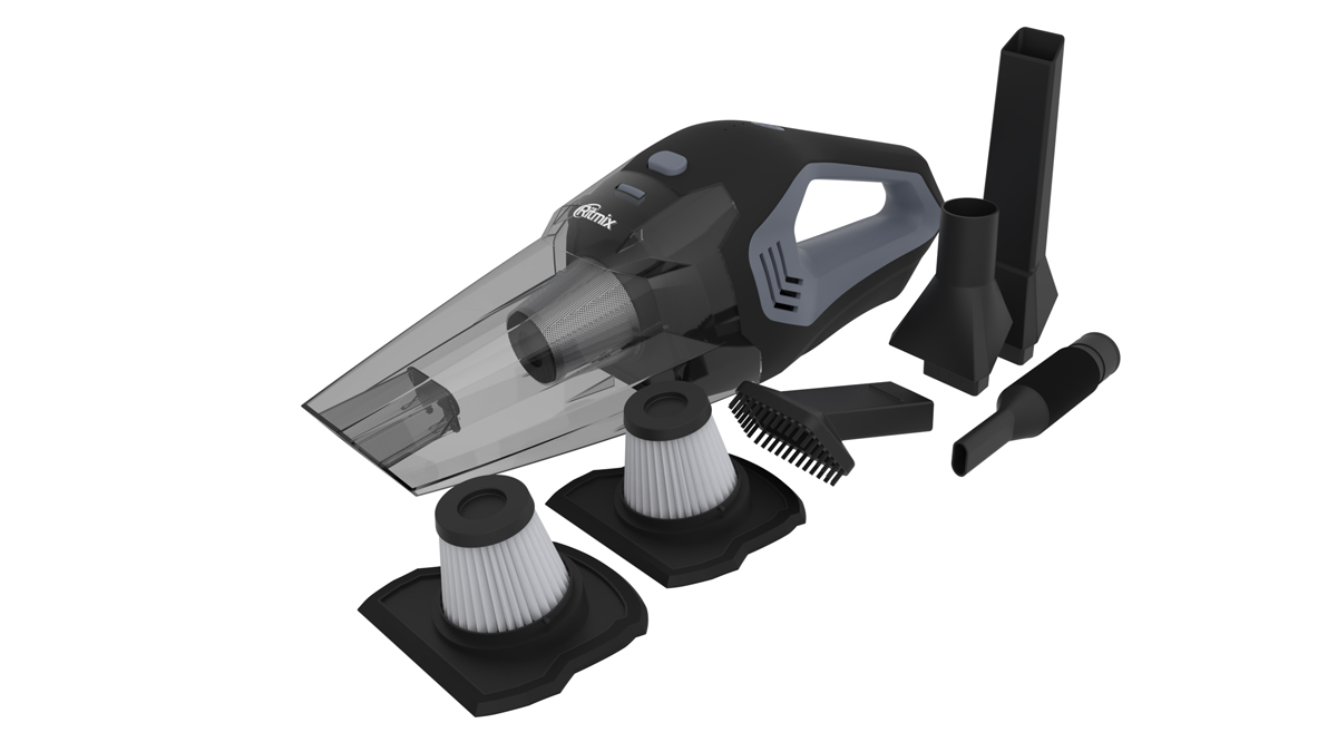 Комплектация: пылесос, 3 многоразовых моющихся фильтра HEPA (1 предустановлен), стальная накладка на фильтр (предустановлена), щетка для очистки фильтров, 4 насадки, кабель USB для зарядки, сумка для хранения