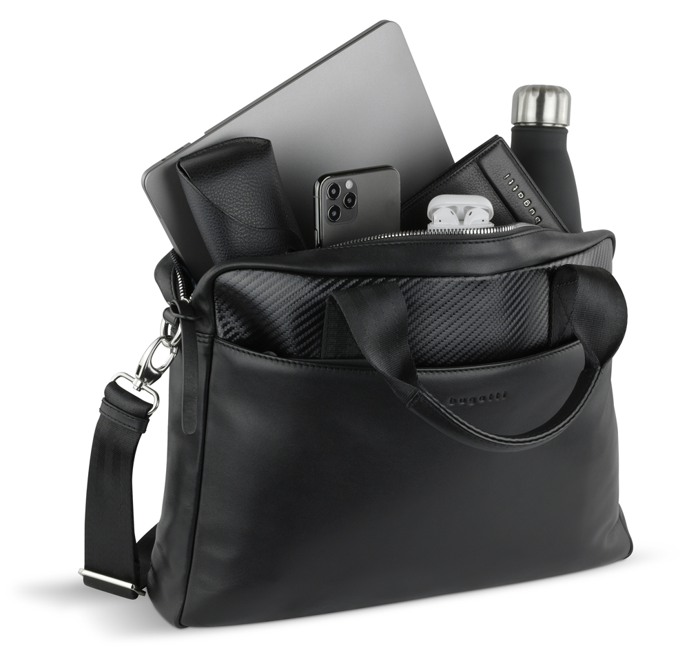 Портфель мужской BUGATTI Comet, чёрный, воловья кожа/полиэстер, 37х6х27 см можно заказать в нашей компании по самой доступной цене от 28 880 рублей.