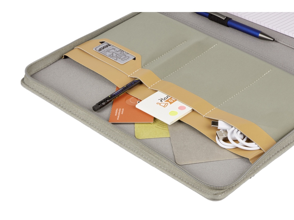 Обложка Harvey выполнена из переработанного пластика (RPET). Внутри папки 40 листов FSC бумаги плотностью 80г/м2, изготовленной с соблюдением экологических норм, на обложке - карман для визиток или бумаг.