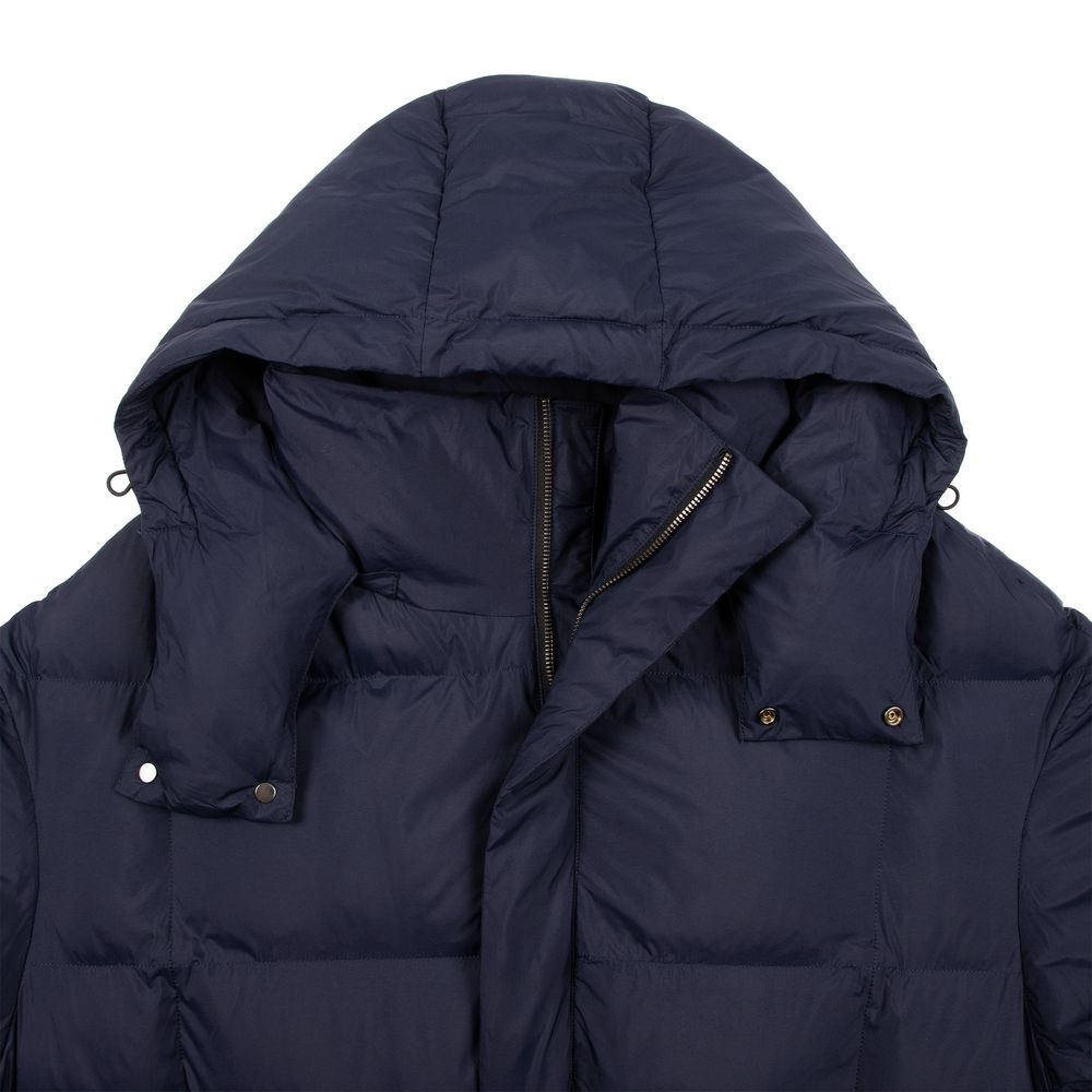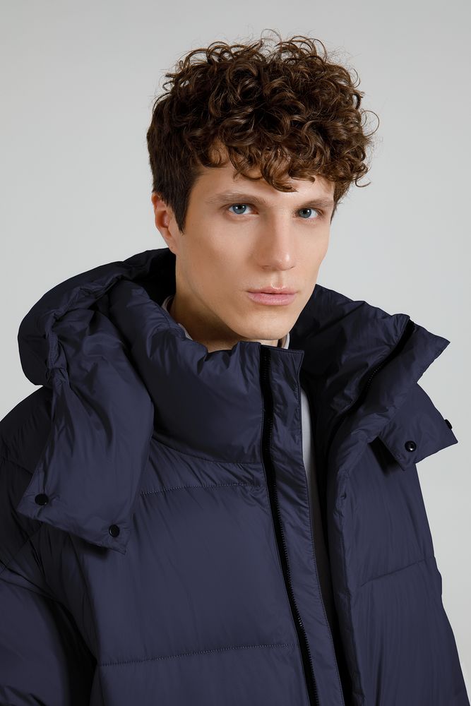 Удлиненный пуховик унисекс с капюшоном.