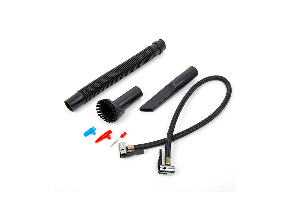 ●Светодиодная подсветка рабочей зоны обеспечит комфортную уборку ●В пылесос встроен компрессор для шин, в комплект входит шланг для компрессора