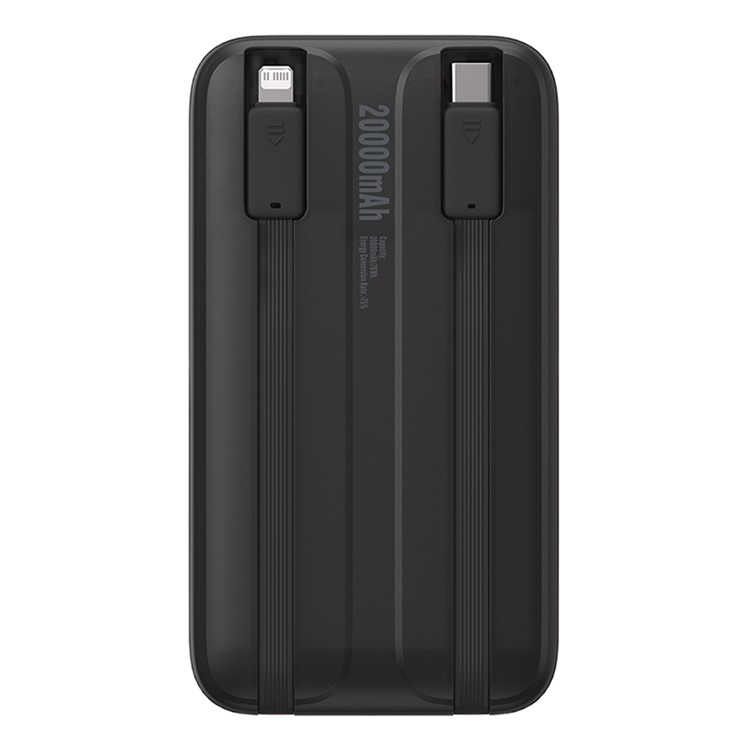 Особенности: два встроенных кабеля для быстрой зарядки: оснащен кабелем для быстрой зарядки Lightning на 20 Вт с PD и кабелем Type-C на 22,5 Вт; двусторонняя быстрая зарядка: порт PD поддерживает двустороннюю быструю зарядку; сертифицированный мультипротокол: сертифицирован по большинству основных протоколов быстрой зарядки, включая PD, QC, AFC, FCP, SCP; режим слабого тока: поддерживает зарядку слаботочных устройств, таких как беспроводные наушники, часы, электрические зубные щетки; интеллектуальный цифровой дисплей