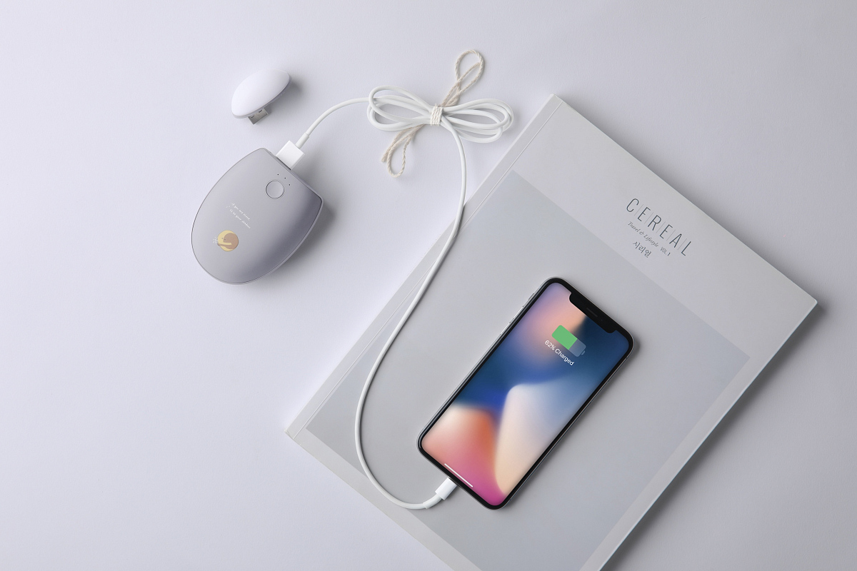 Особенности: 2 в 1: грелка для рук с тремя режимами нагрева и powerbank; его форма с естественными изгибами идеально ложится в вашу ладонь, резиновое покрытие на ощупь мягкое и гладкое, практически невесомый, всего 108 г