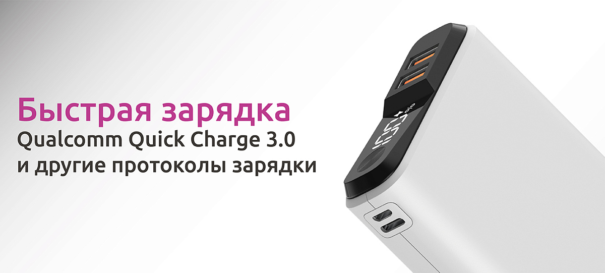 Особенности: LED дисплей с цифровым индикатором остатка заряда, Olmio QS-20 поддерживает быструю зарядку Quick Charge 3.0 на вход и выход, функция Power Delivery с помощью которой пауэрбанк QS-20 может передавать через разъем Type-C ток с максимальной выходной мощностью 18 Ватт, что соответствует требованиям мощных современных смартфонов и даже некоторых ноутбуков