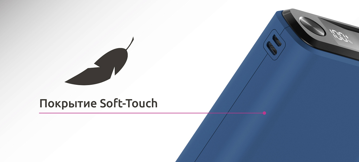 Особенности: сверхмощный павербанк с софт-тач покрытием для повседневной жизни и любого гаджета от наушников до ноутбуков; поддержка технологии power delivery (зарядка ноутбуков); LED индикация зарядки